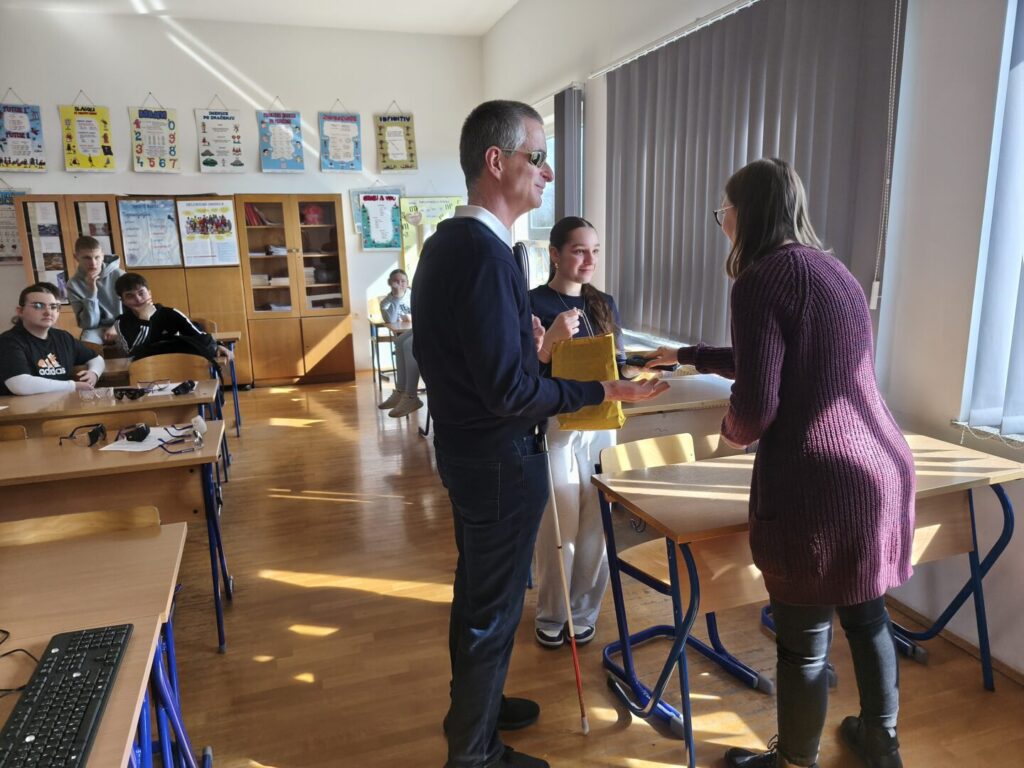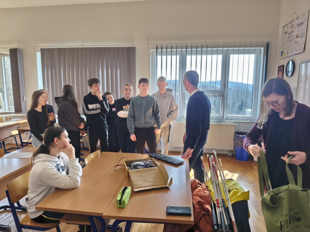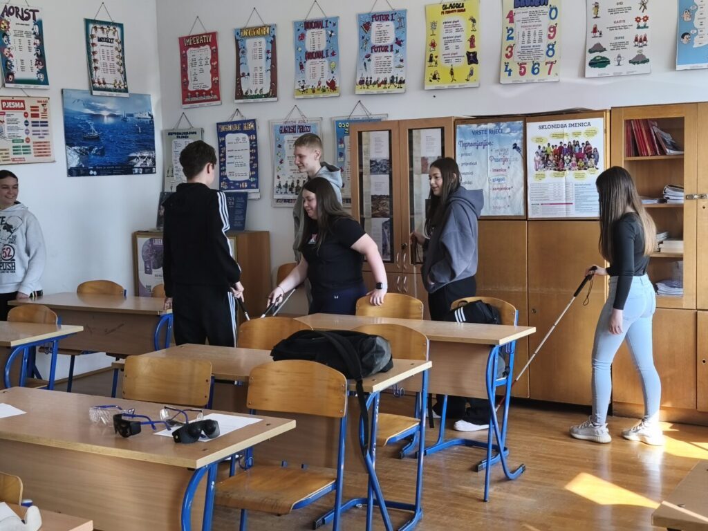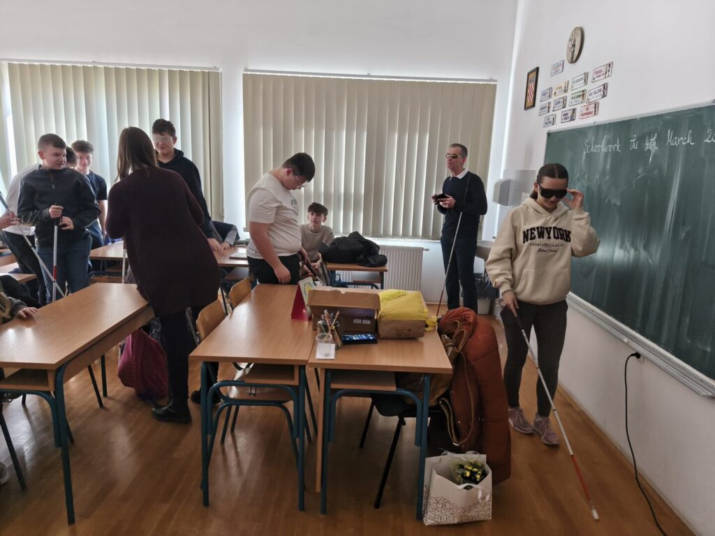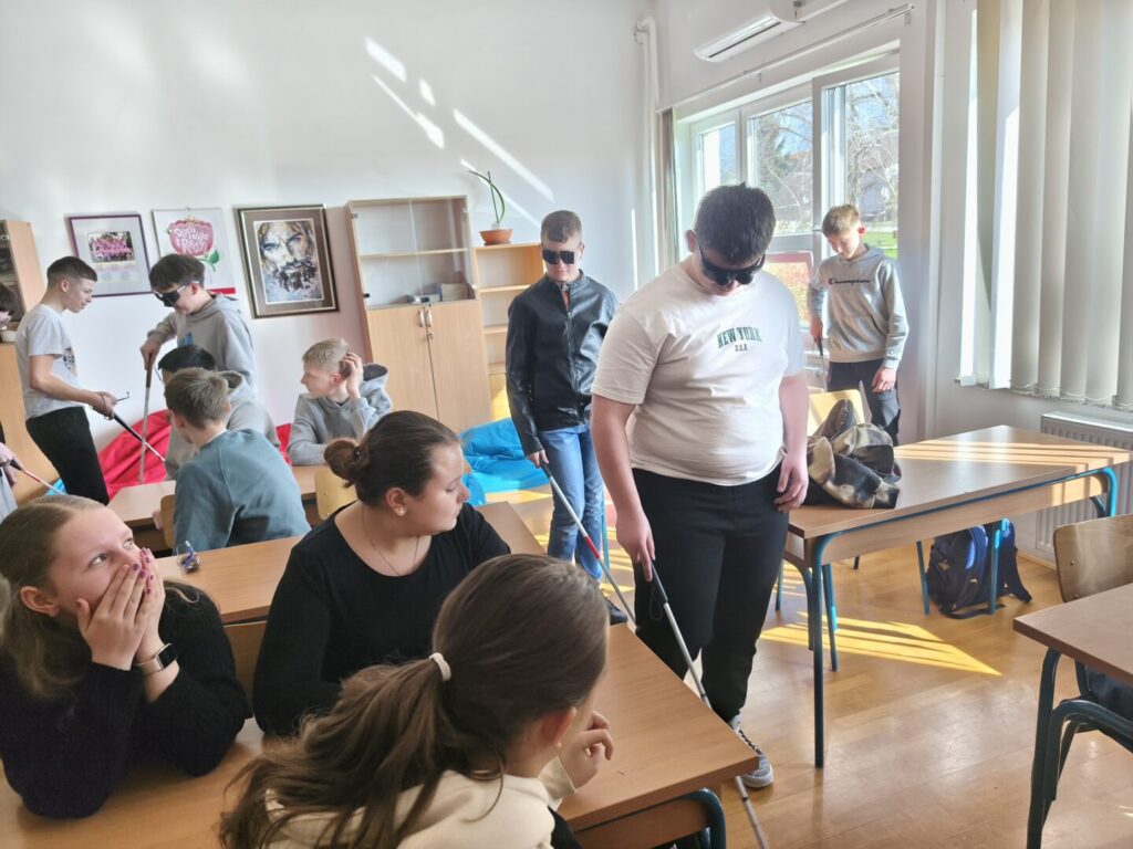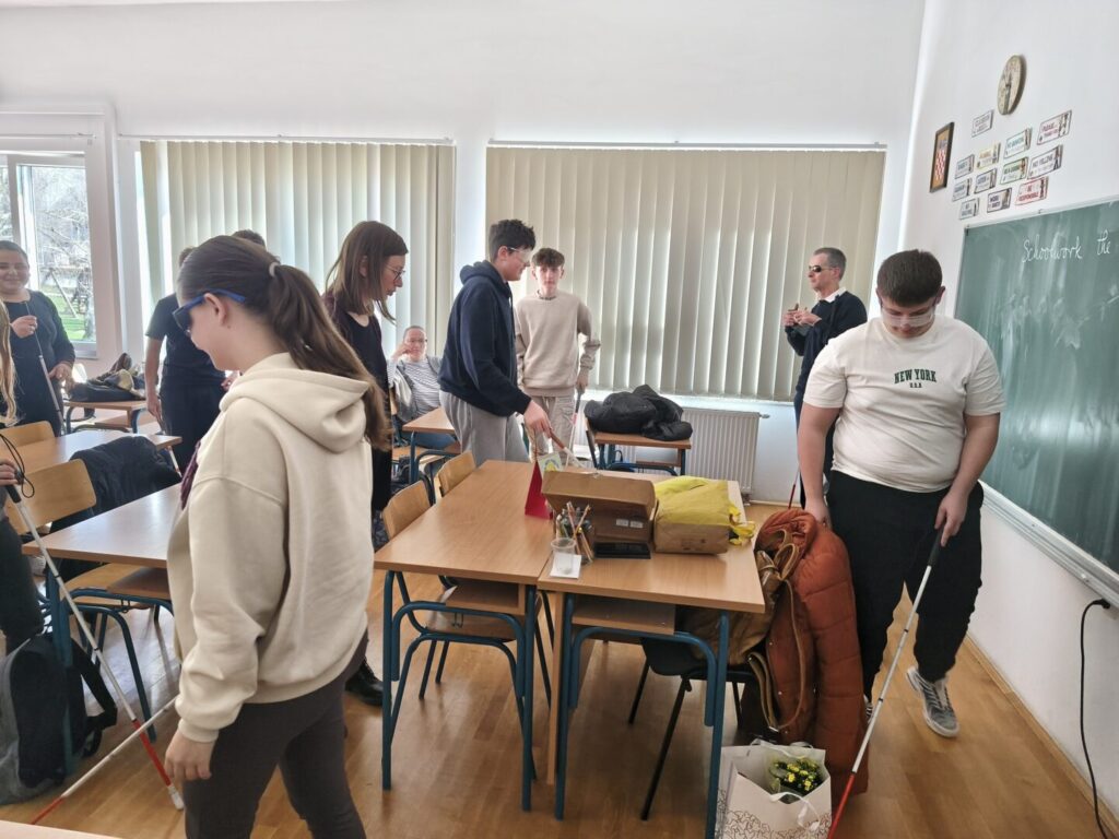 Učenicima su predstavljena i neka od važnih pomagala, poput Brailleova pisma, bijelog štapa te suvremenih digitalnih uređaja koji olakšavaju život osobama s oštećenjem vida. Na taj način učenici su dobili bolji uvid u to kako funkcionira svakodnevica slijepih osoba i koliko su prilagodbe važne za njihovu samostalnost.
