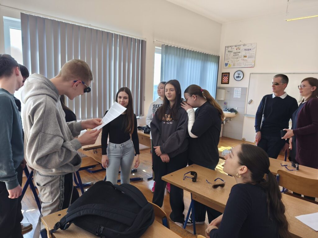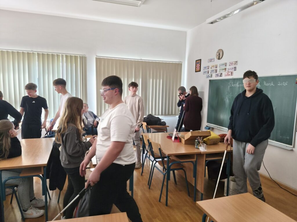 U osnovnoj školi Sv. Petar Orehovec 4. ožujka 2026. god. održano je zanimljivo i poučno predavanje i radionica koje je organizirala Udruga slijepih Koprivničko – križevačke županije za učenike osmih razreda. Tema predavanja, „Gledajte kroz naše naočale“, već na prvi pogled potiče na razmišljanje i poziva učenike da svijet pokušaju sagledati iz perspektive osoba s oštećenjem vida.