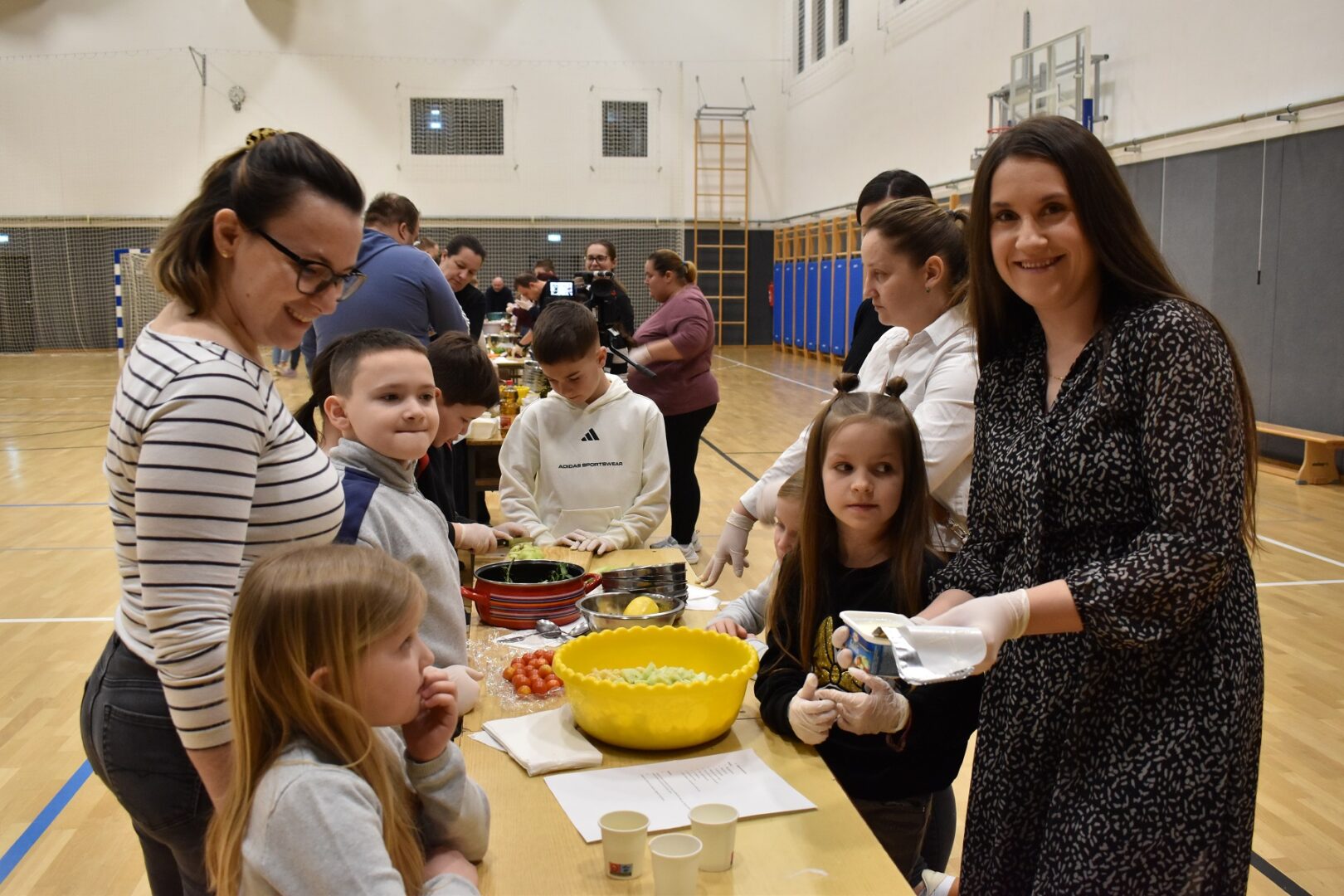 Naime, roditelji i djeca, njih šezdesetak, u dvorani su radili zdrave salate. Pripremili su ukupno sedam vrsta salata od slanutka, graha, tjestenine i različitog povrća. Ovo druženje roditelja i djece bio je dio projekta „Škole hrabrosti“. Više o druženju i ciljevima ovog druženja dostupno je u digitalnom školskom listu KLINČEK.